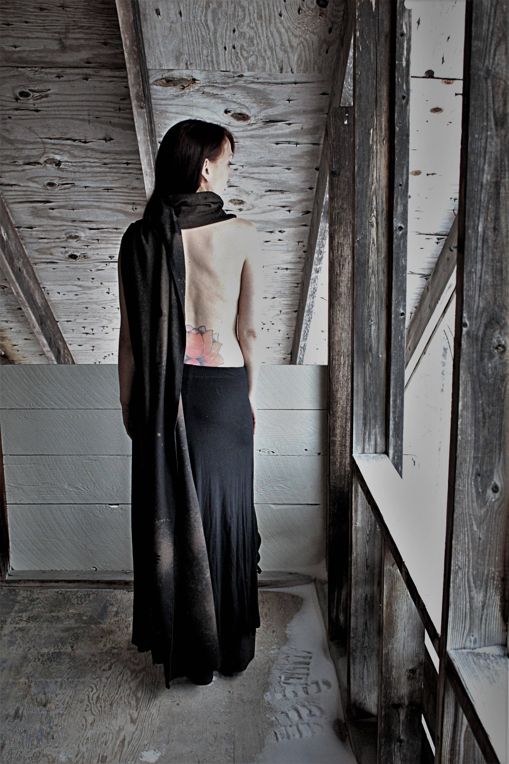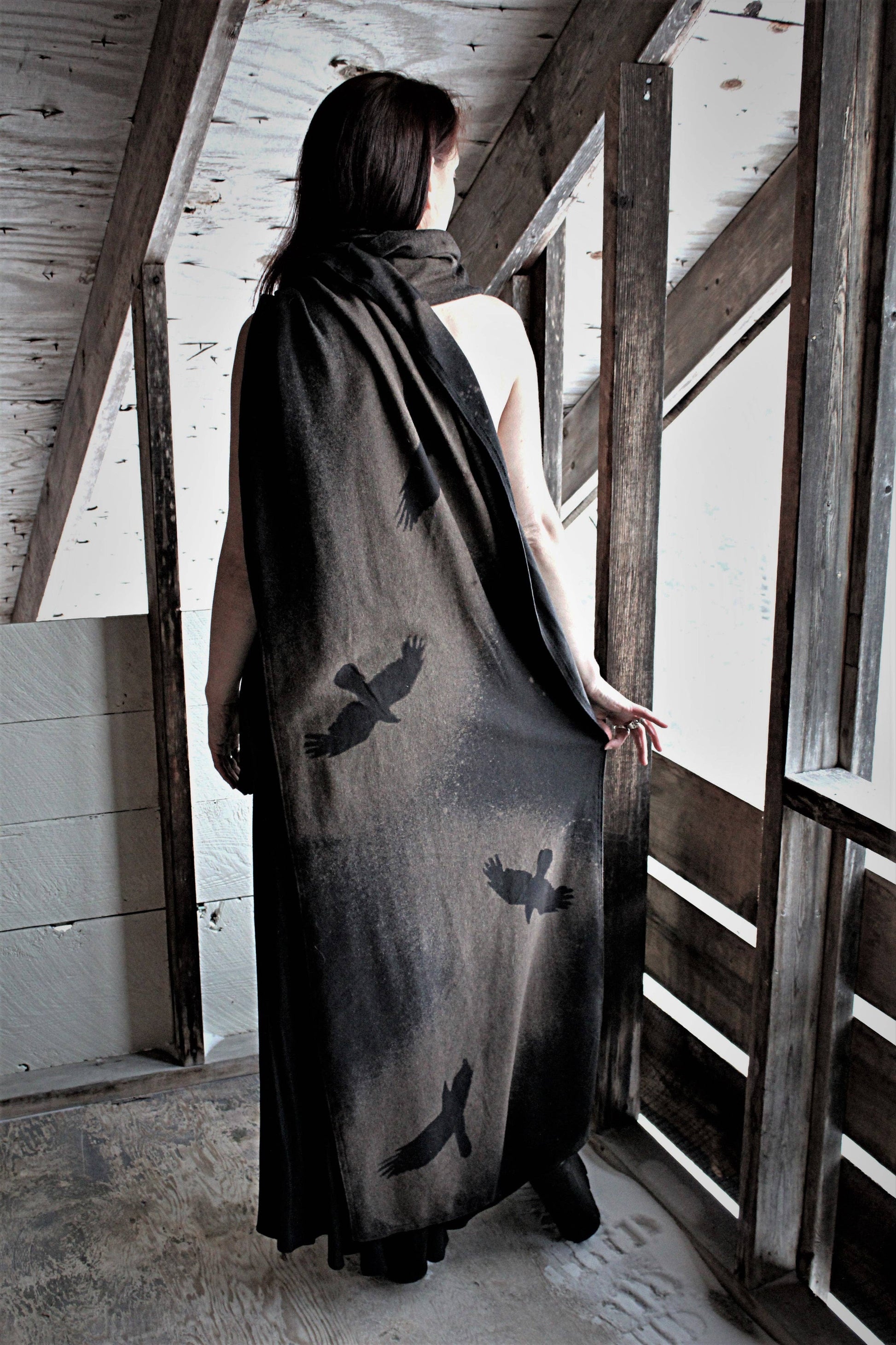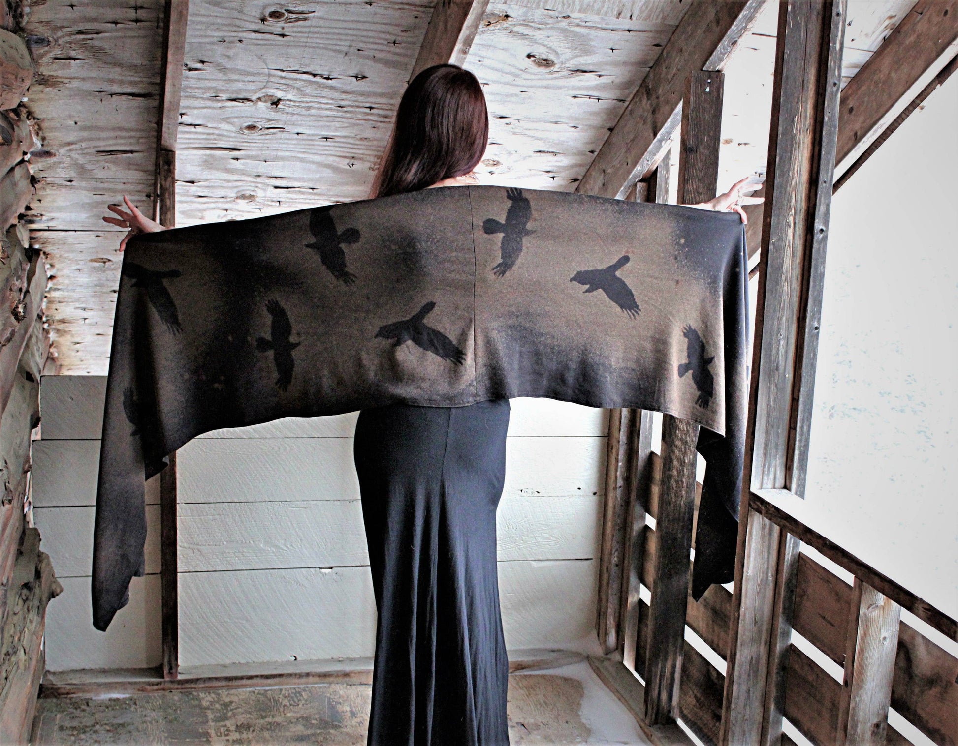 Discover creative ways to drape, layer, or wrap this extra-long, wide cotton-blend scarf. With 112 inches x 19 inches of fabric, the possibilities are endless! And, each design is unique--created with a dye removal process and hand-printed crow by crow. Be daring and discover all the ways to wear this unique piece!
