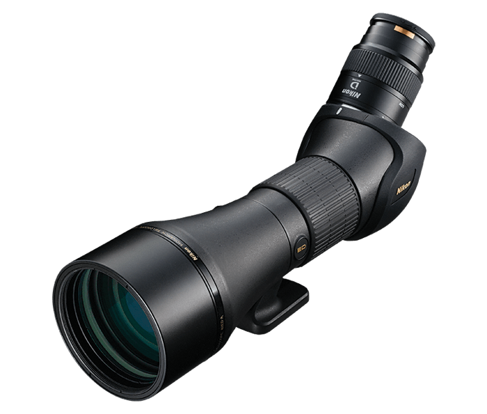 With extra-low dispersion (ED) glass preventing chromatic aberrations and Field-Flattener technology for edge-to-edge sharpness, the Monarch 20-60x82 ED Spotting Scope from Nikon offers a contrast-rich and color-accurate image. Equipped with an 82mm objective lens that gathers ample light and a 20-60x zoom eyepiece, this angled-viewing scope is suited to a wide range of uses.